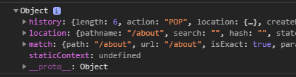 - history, location, match, staticContext 총 네 개의 props가 존재하고 있다.