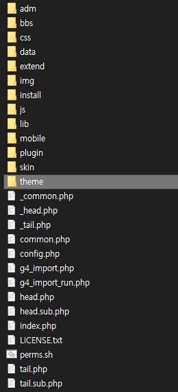 혹은 그누보드5의 theme 폴더를 삭제해도 된다.