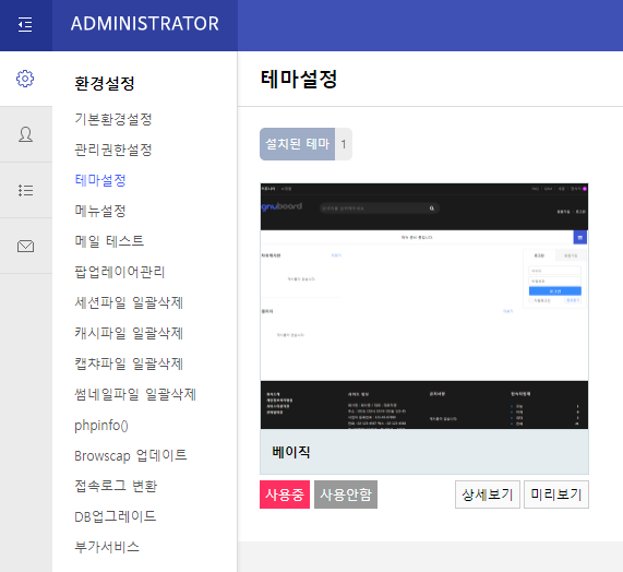 그누보드를 처음 설치하면 basic 테마가 적용되어 있다.