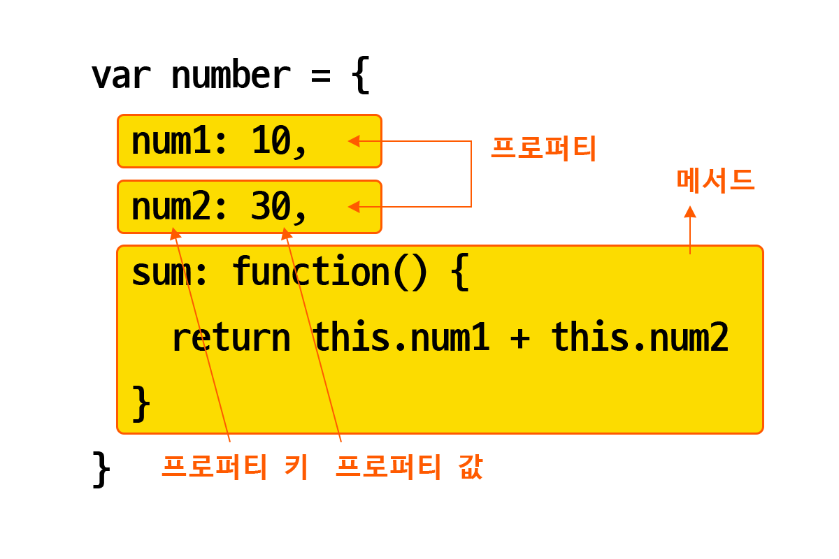 다시 프로퍼티는 키(key)와 값(value)으로 구성되는데 프로퍼티 값이 함수일 경우, 일반 함수와 구분하기 위해 메서드(method)라고 부른다.