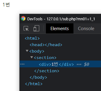 따라서 http://도메인/sub.php?mn01=1_1 로 접속해야 1번이 정상적으로 보인다.
