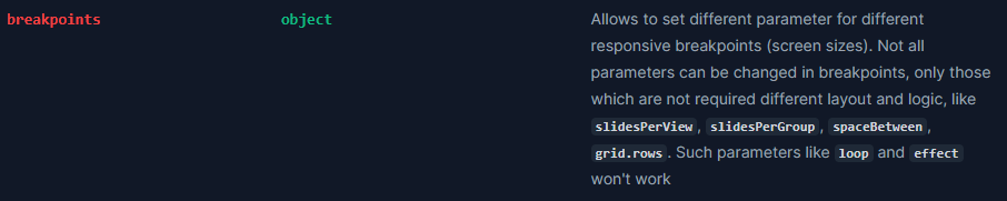 swiper의 breakpoints는 해상도에 따라 슬라이드 개수, 슬라이드 간격 등을 조절할 수 있지만