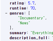 - 포스팅 시점 기준으로 JSON의 경로는 https://yts.mx/api/v2/list_movies.json 이고 URL을 열어보면 영화 정보가 가득하다.