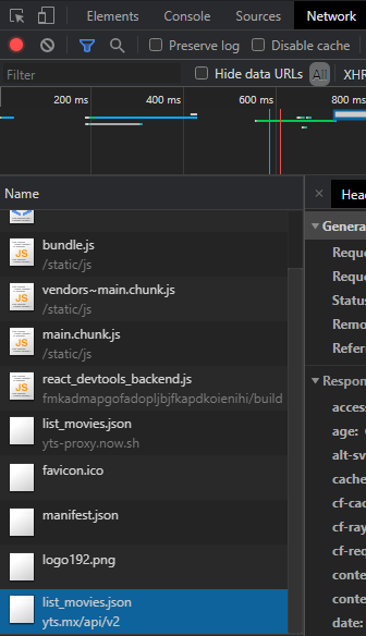 - 이제 우리는 영화 정보까지 얻었다. 하지만 한 가지 문제가 있다. YTS는 불법 토렌트 사이트다. 따라서 도메인을 수시로 바꾸기 때문에 API URL도 계속 바뀐다. (강의에서 불법 사이트를 이용한다니 신기하다.)